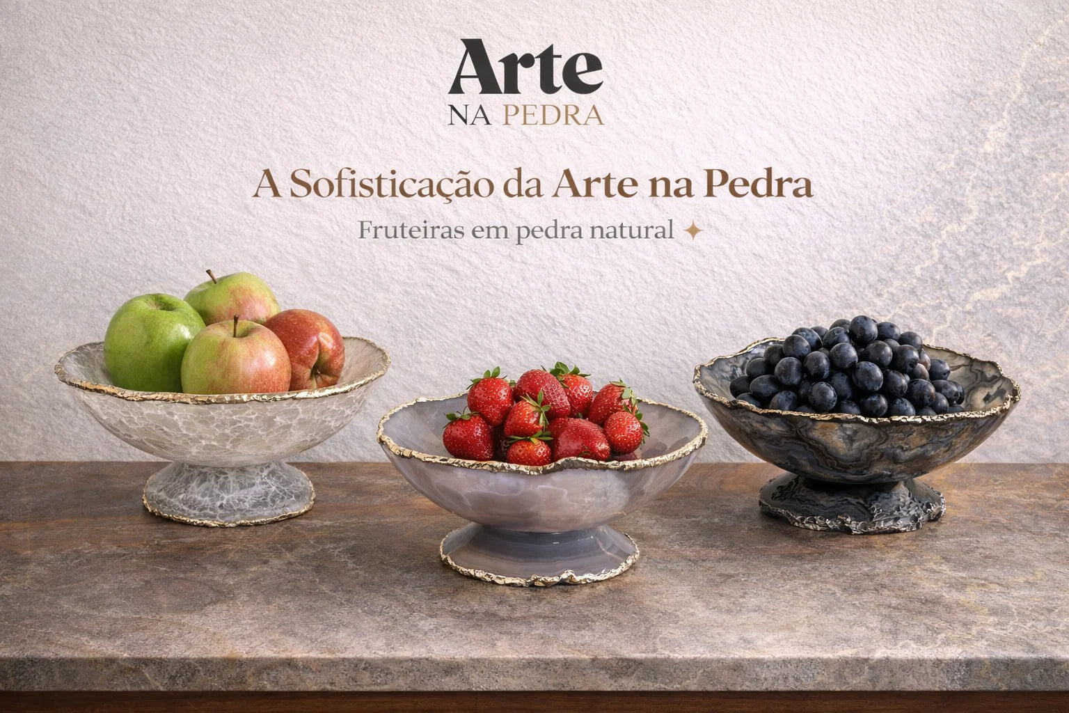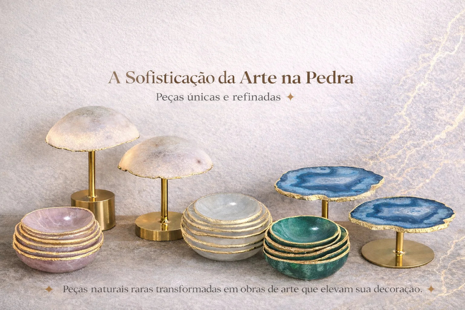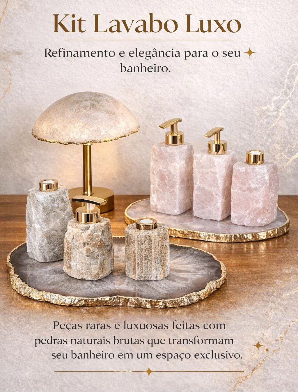 Kit Lavabo Luxo com Pedras Naturais e Dispensers Dourados